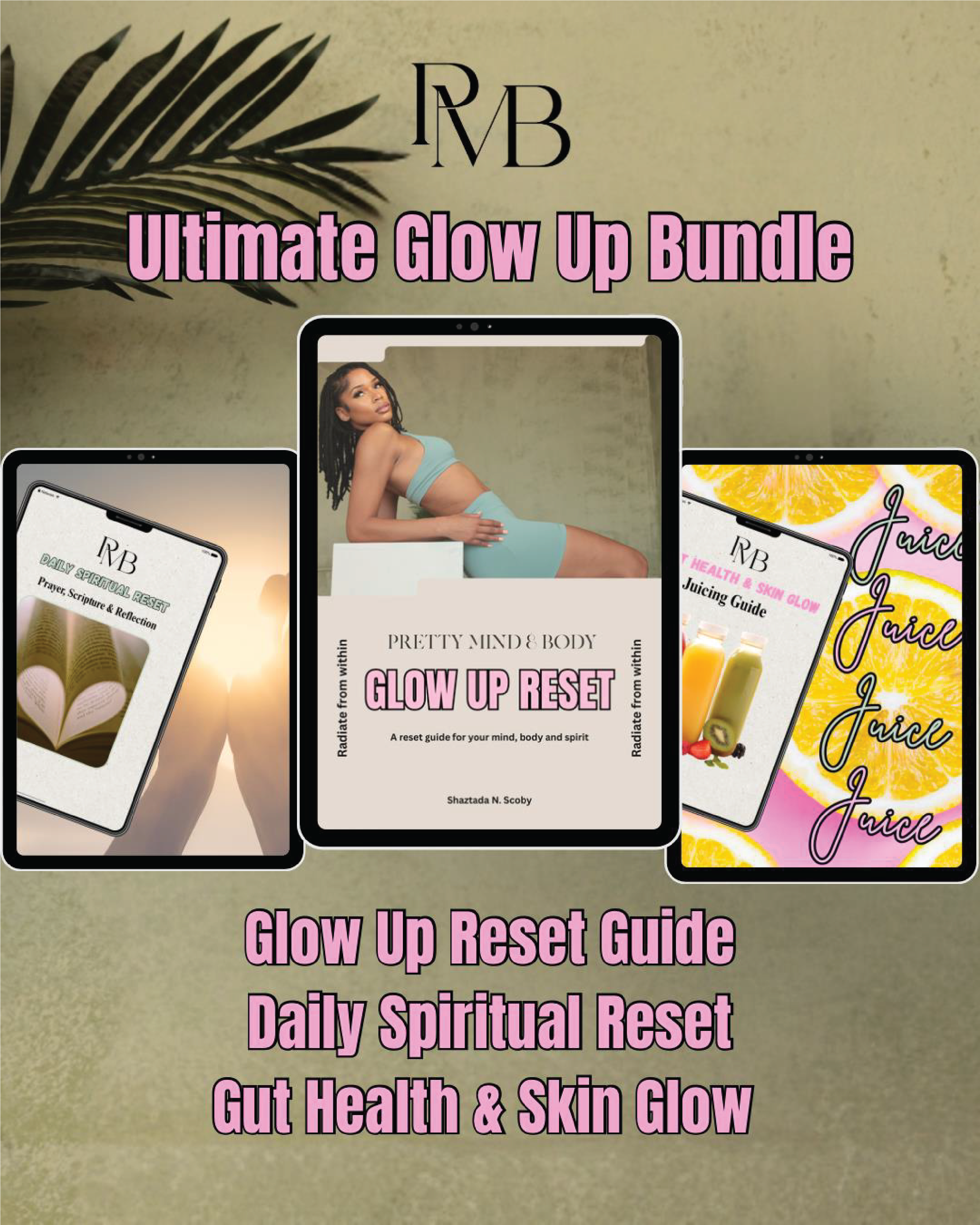 The PMB Glow Up Bundle is the ultimate mind–body–spirit transformation starter pack. These three guides work together to help you reset spiritually, nourish your body, and elevate your daily routines so you can become the most aligned, disciplined, glowing version of yourself. Perfect for new seasons, lifestyle resets, or building soft, feminine discipline with God at the center.